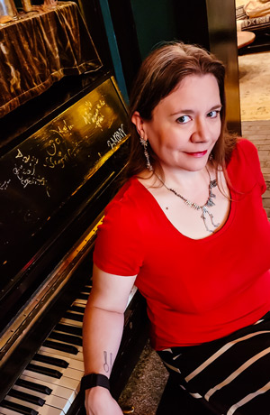 By day she tunes pianos all over Eastern Iowa, by night she entertains crowds at casinos and event centers with her band.